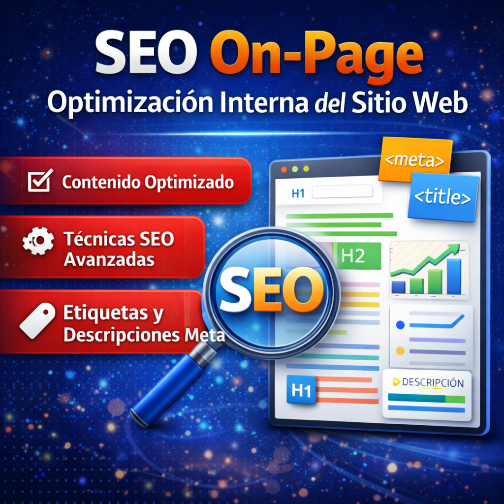 Optimizamos todos los elementos internos de tu web para mejorar su posicionamiento en Google. Nuestro servicio de SEO On-Page incluye optimización de títulos, meta descripciones, encabezados (H1–H6), contenido, enlazado interno, imágenes y arquitectura del sitio. Esto permite que Google entienda mejor tu web y la posicione por las palabras clave más buscadas de tu sector.